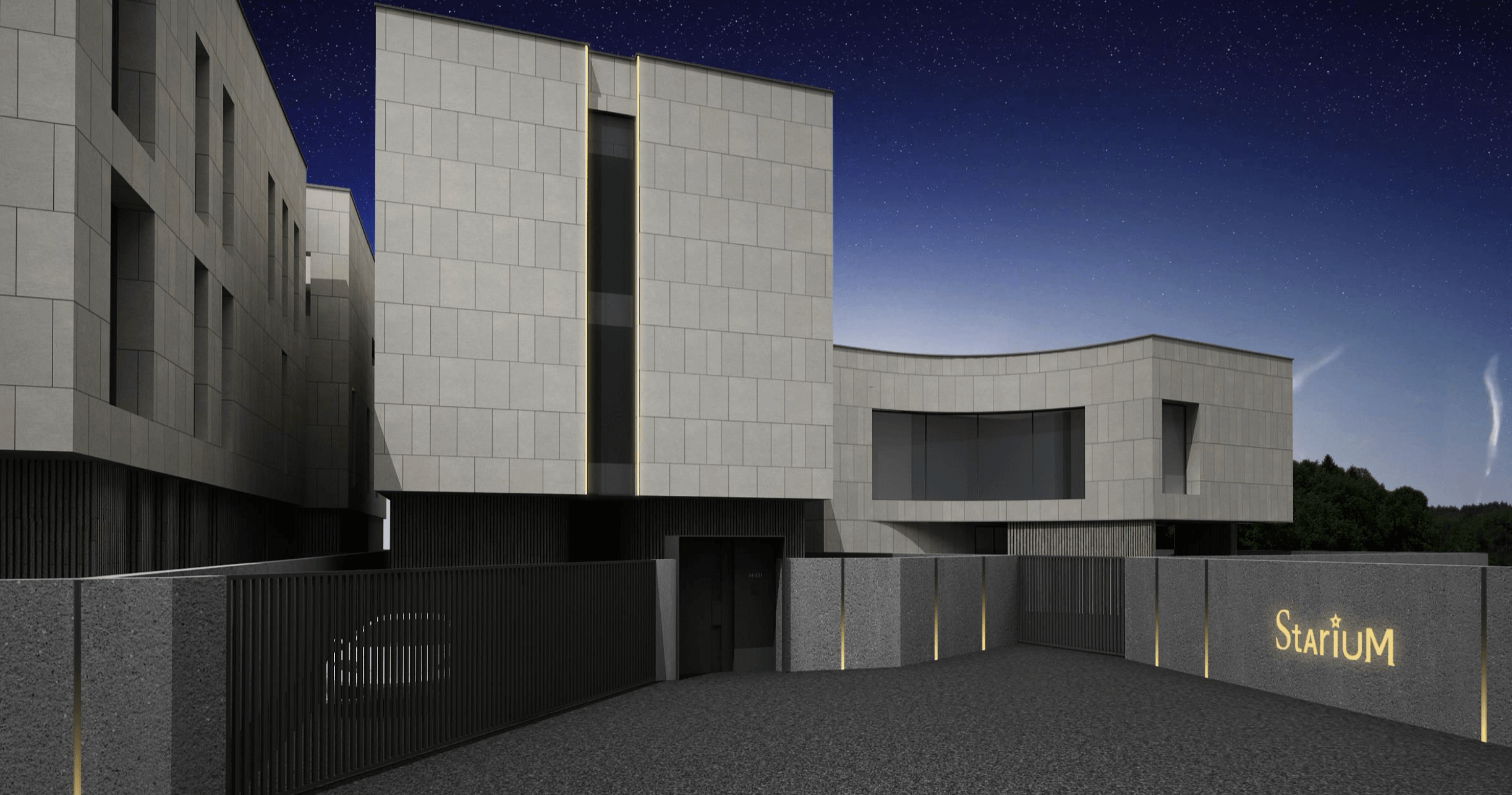 스타리움의 외관은 대담한 직선과 곡선의 조화를 통해 우아함과 웅장함을 표현하였으며, 실내는 가족의 동선을 고려한 혁신적인 공간 구성으로 설계되었습니다.