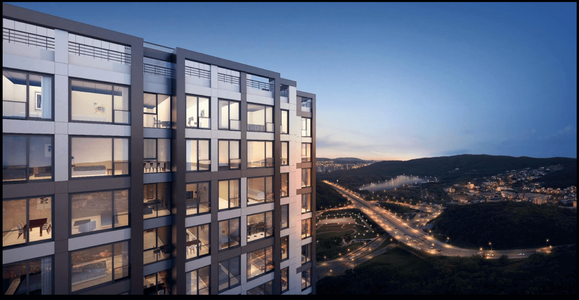 - 와이드 프레임 창호로 자연 조망권 극대화