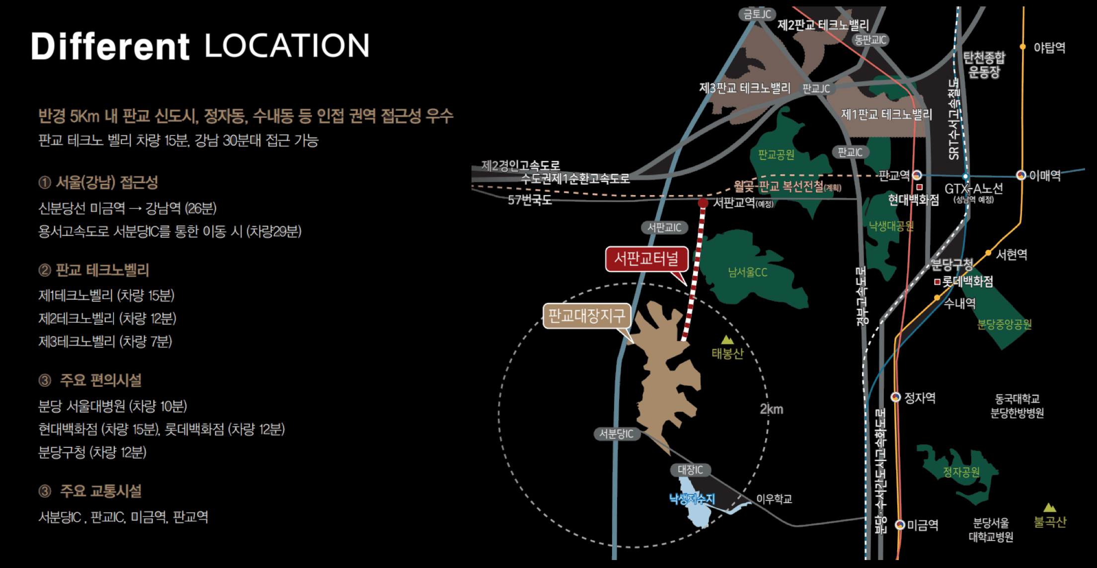 - 분당수서고속도로, 경부고속도로 접근 용이, 전국 이동 편리
